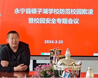 为保障学生身心健康,及时预防校园欺凌,构建平安、文明、和谐校园,2024年3月22日下午银子湖学校召开了防范校园欺凌暨校园安全专题会议。此次会议由政教主任王振宁主持并开展,参与本次会议的有杨晓东书记,赵玉龙副校长,政教处王振宁主任,汪永华副主任,一至九年级各年级部主任及辅导员等。